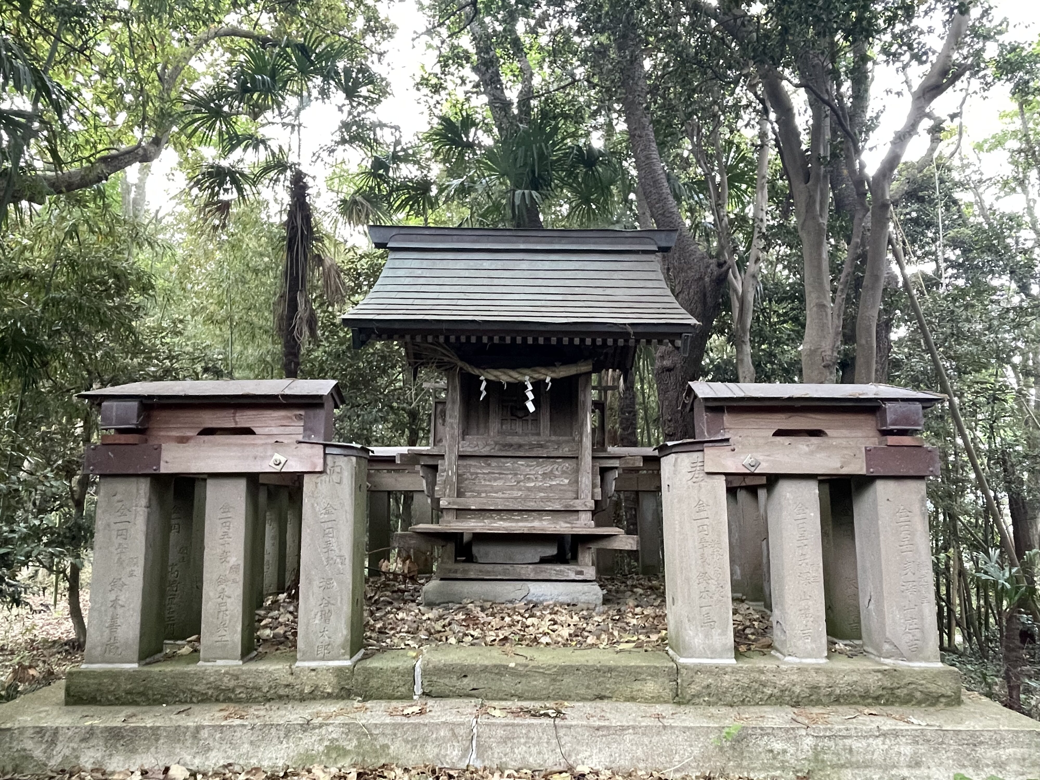 玉崎神社の境内社と石碑の位置 境内社 大漁稲荷神社 三峰神社 三峰神社から見た玉...