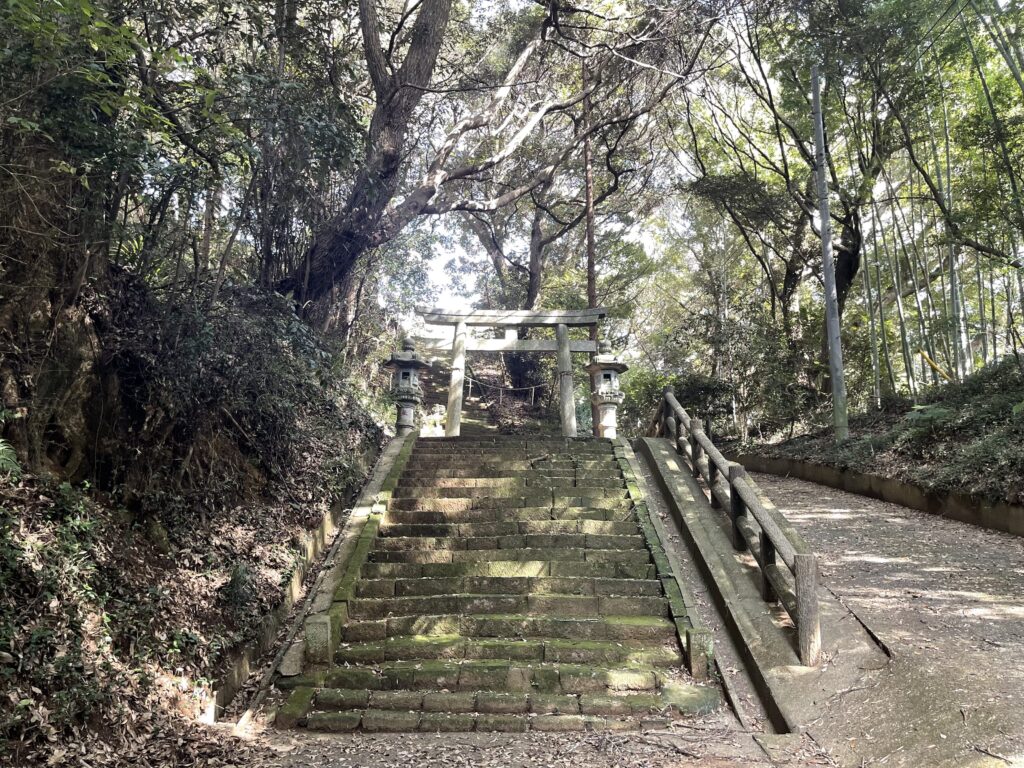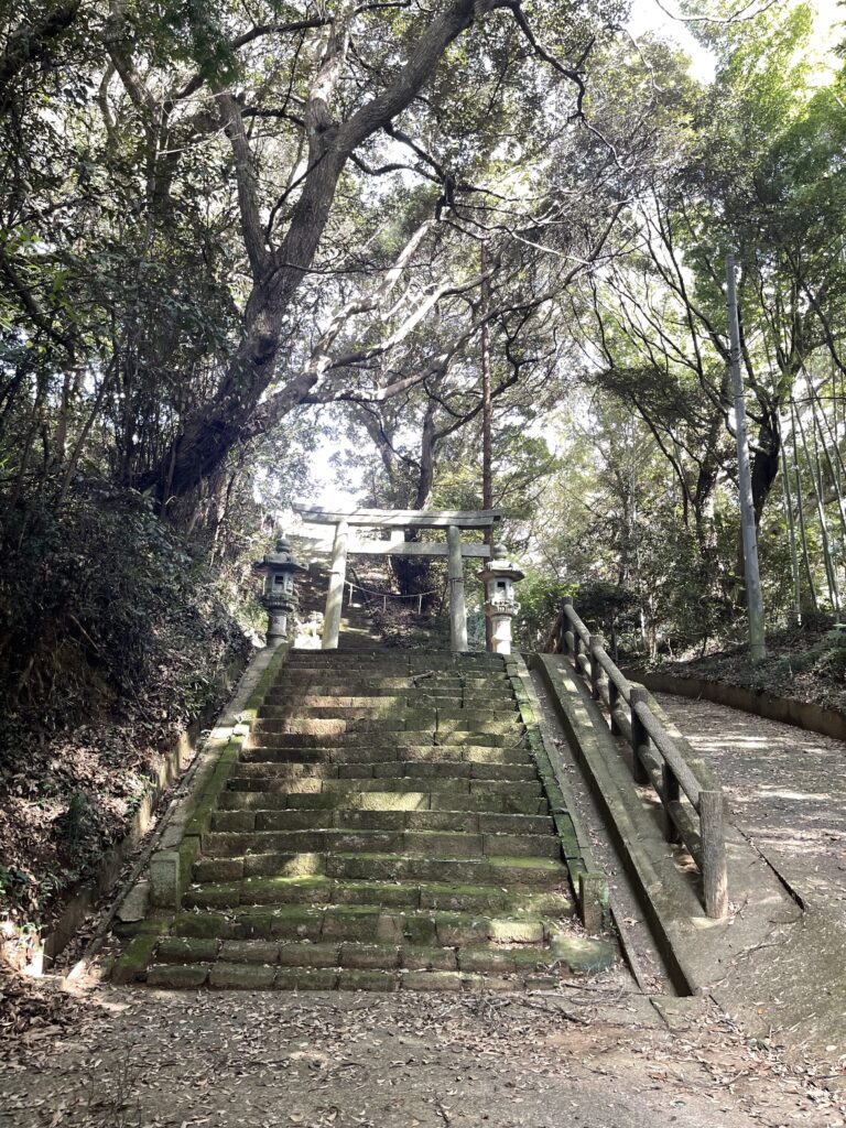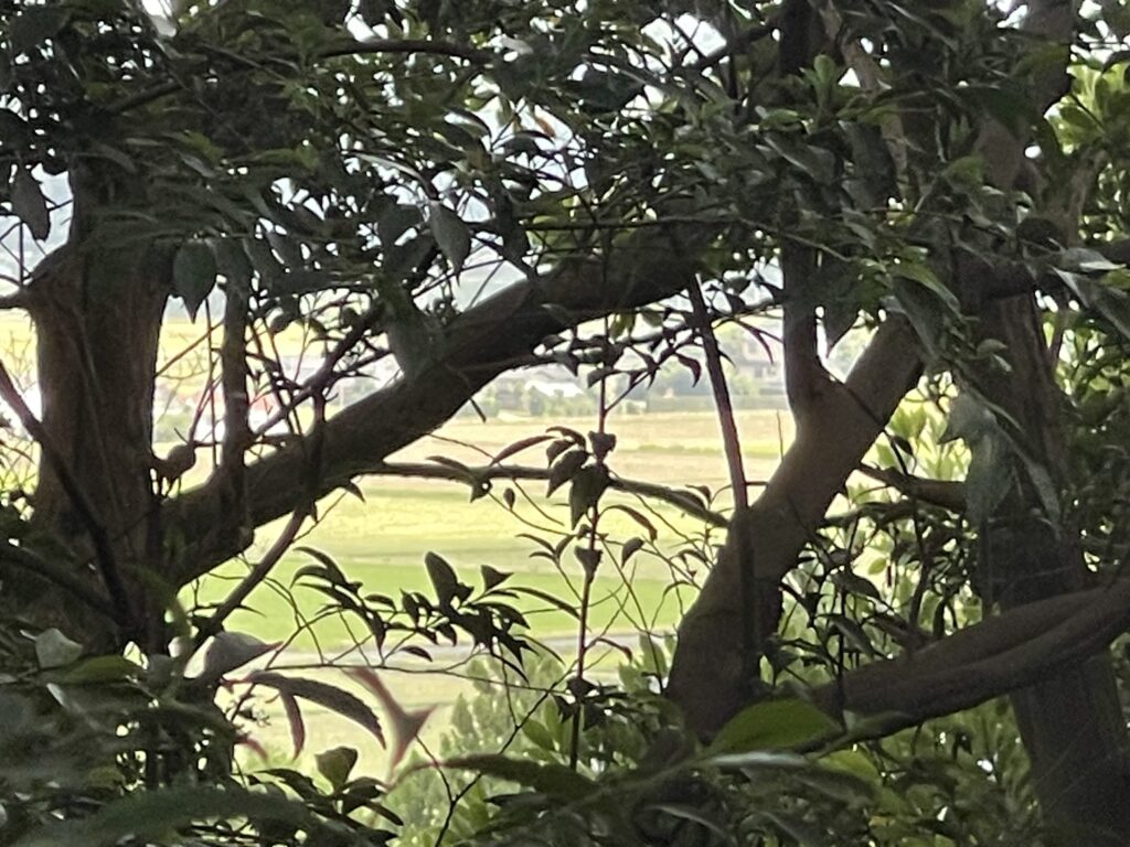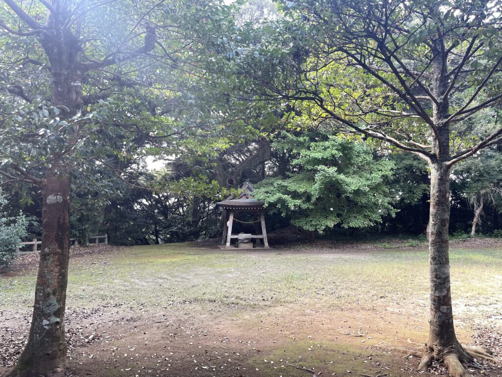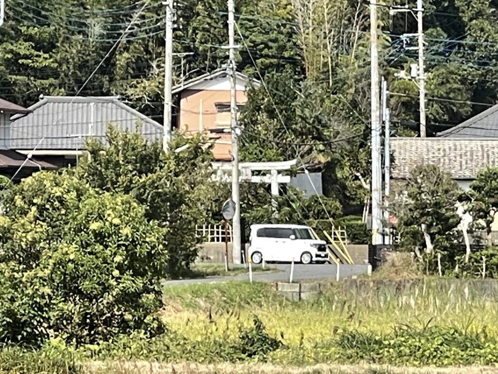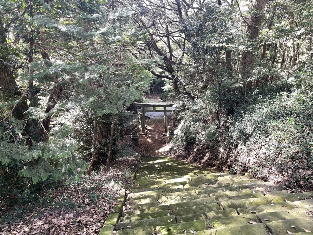 社殿背後は、かなり広い空間があり、樹々の隙間から低地の水田を見下ろすことができます。往古は、椿海や船を見下ろしていたのでしょうか。