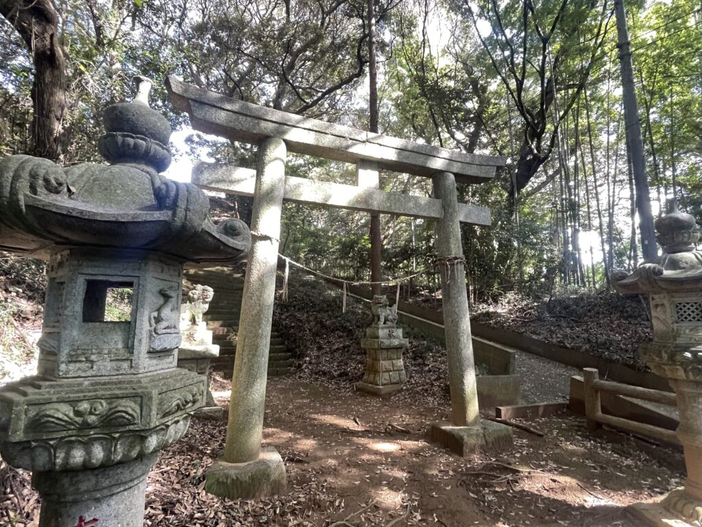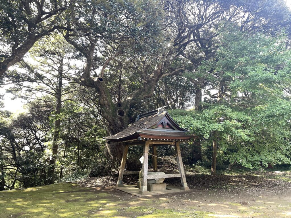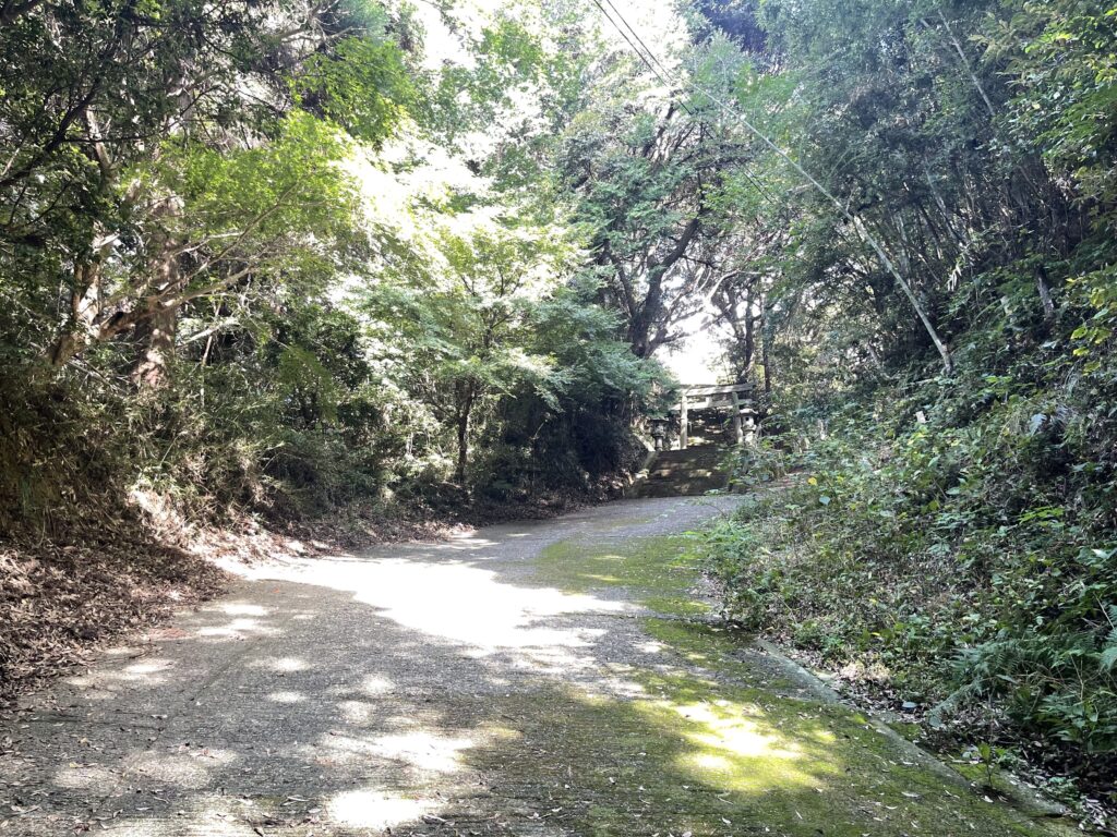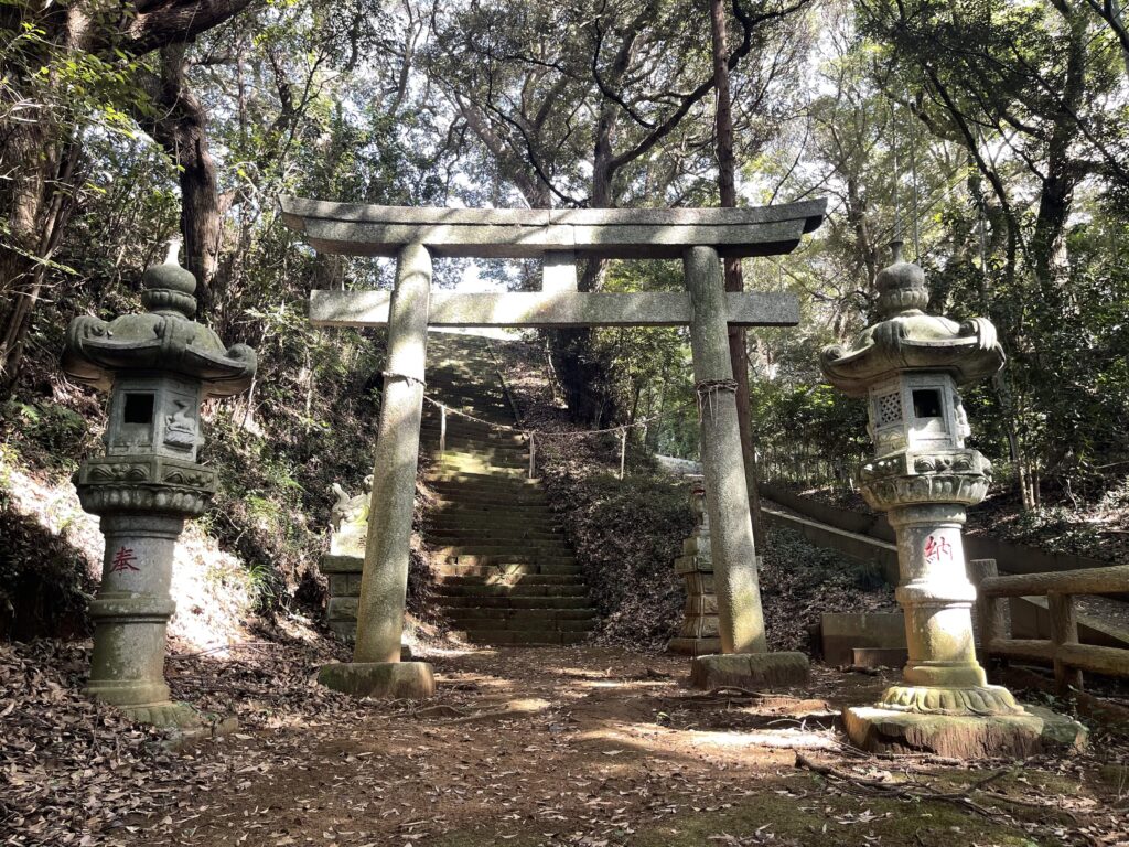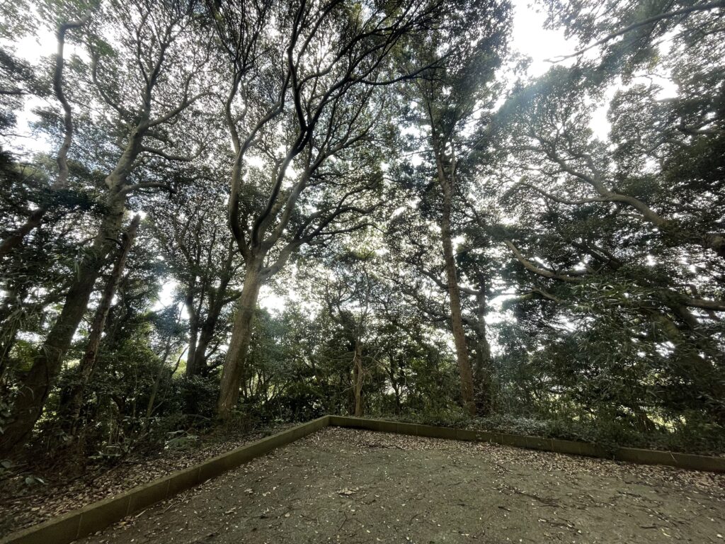社殿背後は、かなり広い空間があり、樹々の隙間から低地の水田を見下ろすことができます。往古は、椿海や船を見下ろしていたのでしょうか。