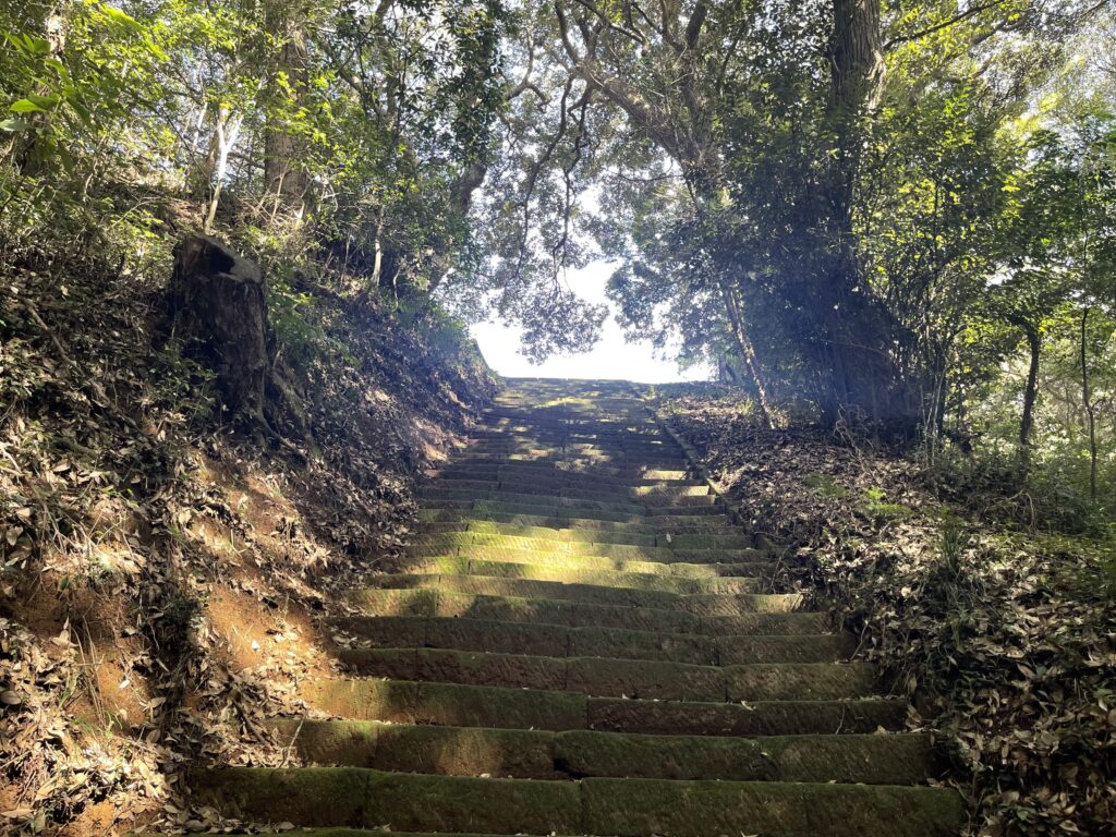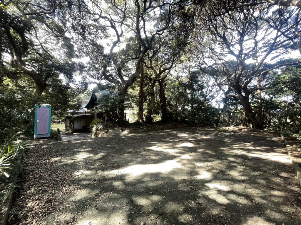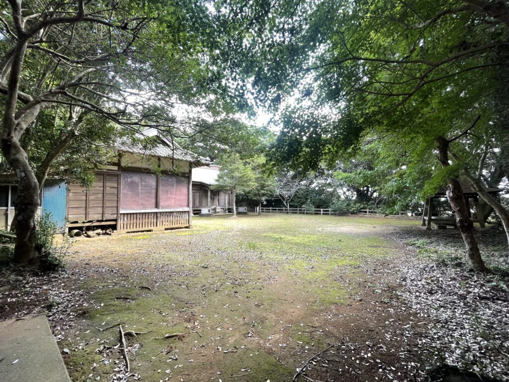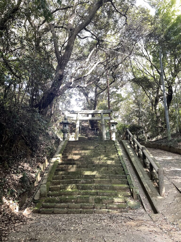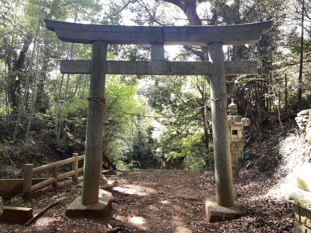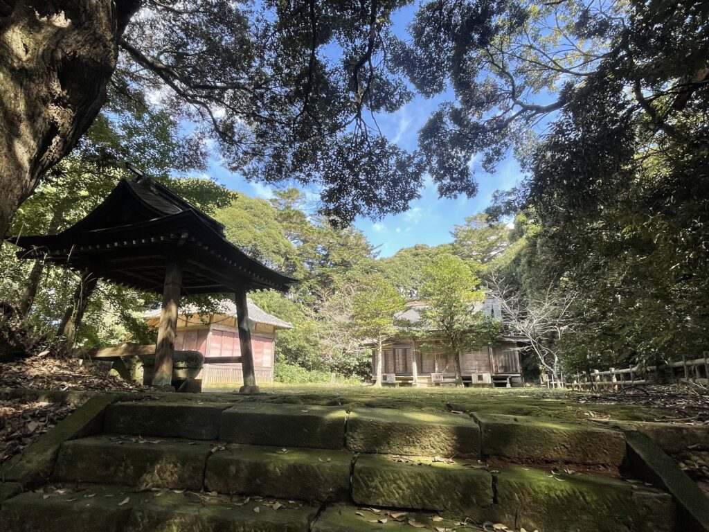 社殿背後は、かなり広い空間があり、樹々の隙間から低地の水田を見下ろすことができます。往古は、椿海や船を見下ろしていたのでしょうか。