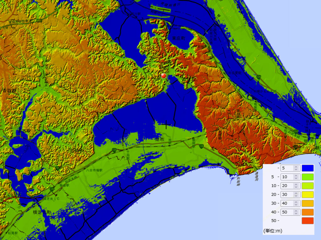 椿海は、下記の地図中央の位置にかつてあった湖です。江戸初期、江戸の食糧問題を解決するために干拓され水田となり、現在にいたります。
