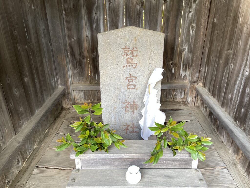 画面中央左に当社「鷲宮神社」の小さい鳥居が見える
