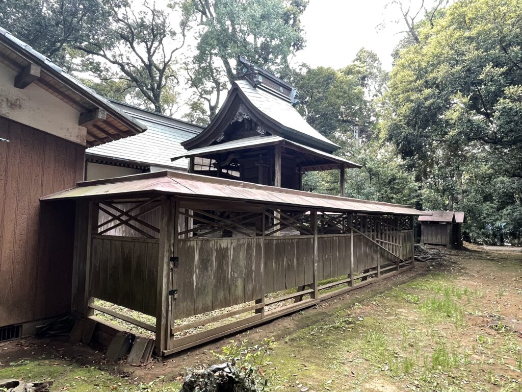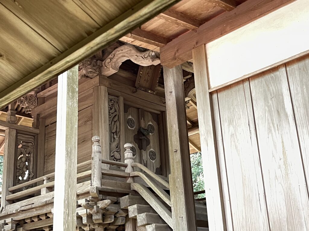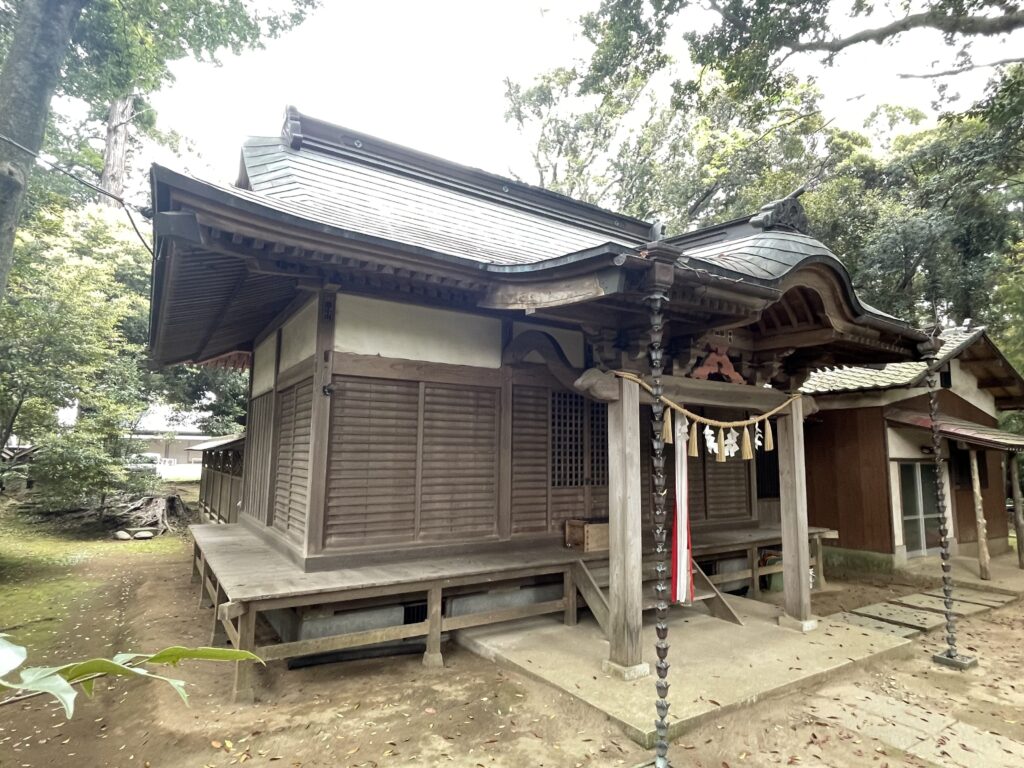 境内の中にはほかに、豊受、天神、八坂、道祖、浅間、子安、白山、皇大神宮などが祀られています。神社の創建は不確かですが、江戸時代中期(1750年頃)にはできていたと思われます。境内の左奥に神輿が奉納されています。祭典は十月十五日に行われ、神輿の渡御は三年ごとに行われます。