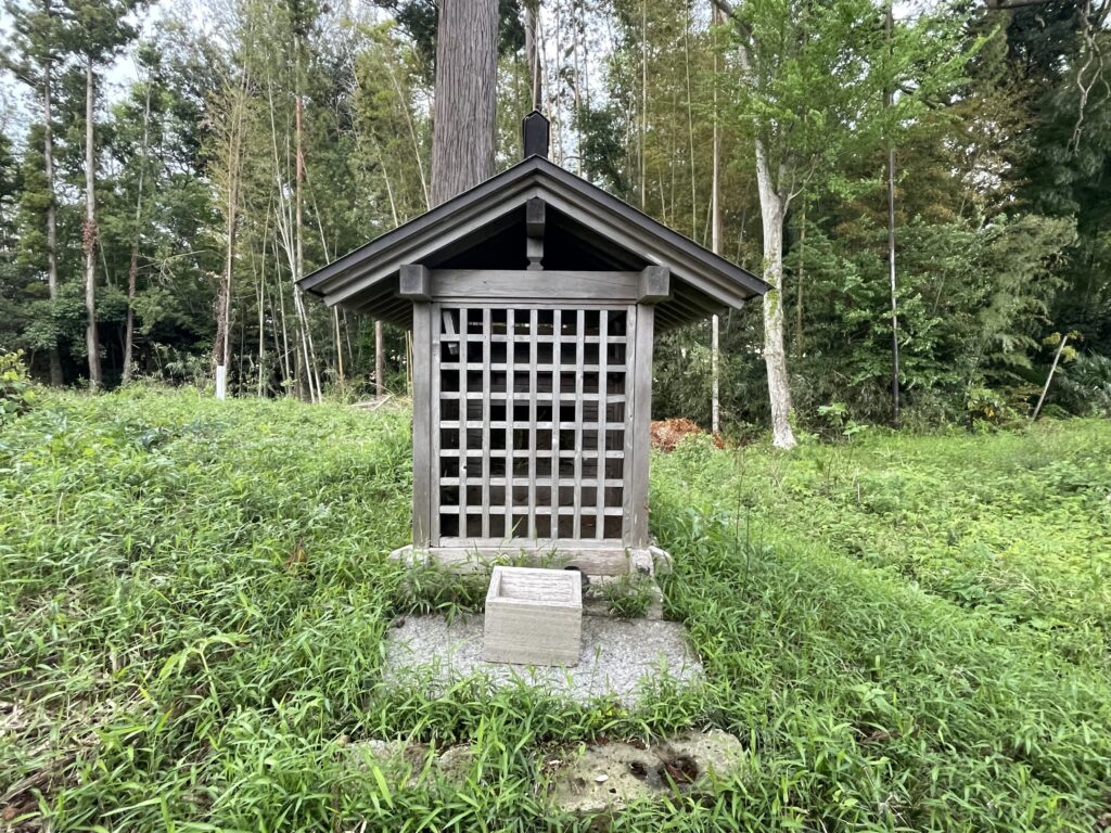 (前略)胤直の嫡子胤将は諸々に逃れ、寺崎に城を築いて居城した。字新小路の神明社は胤将が千葉城の神明社を勧請したものである。(中略)屋形の守護神として表鬼門(北東)に神明社、裏鬼門(南西)に浅間社をそれぞれ勧諸したものである。(後略)