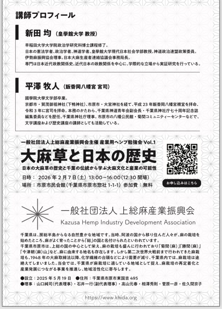 2月7日(土)産業用ヘンプ勉強会 Vol.1「大麻草と日本の歴史」