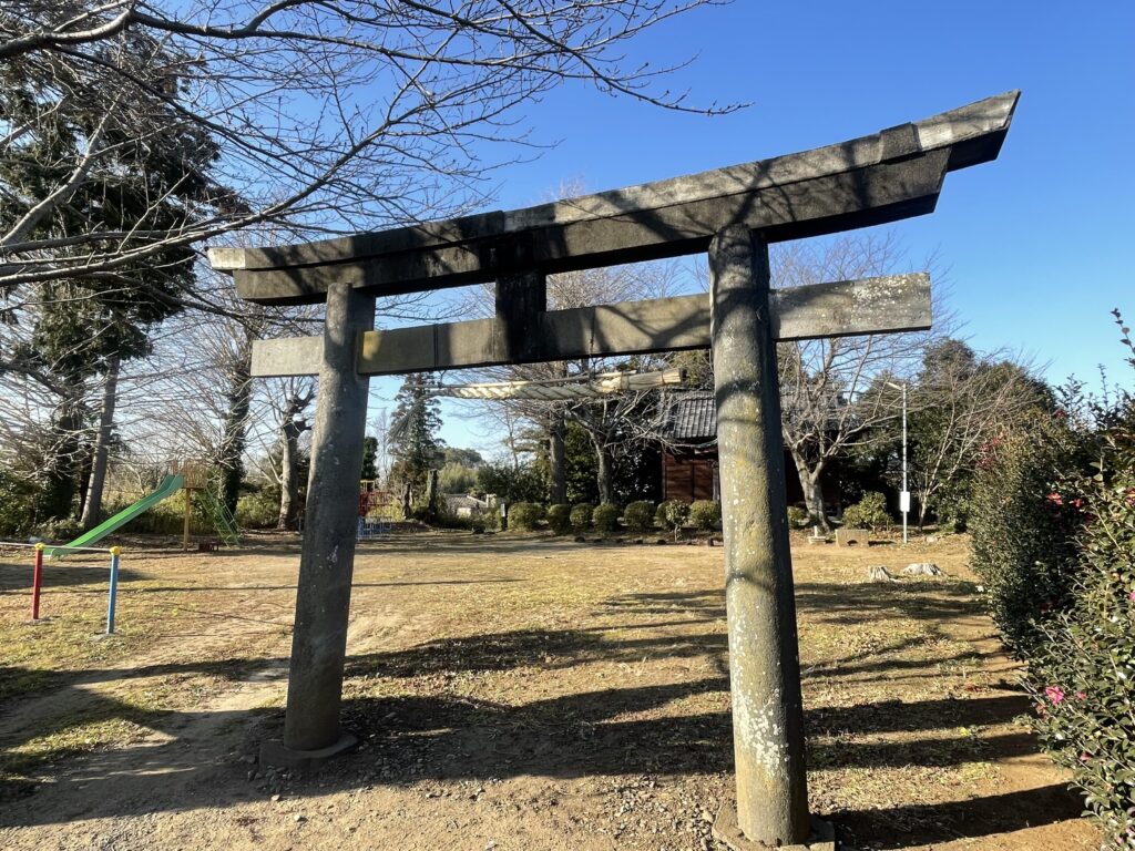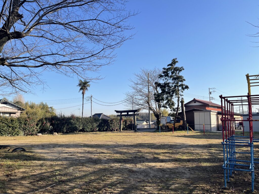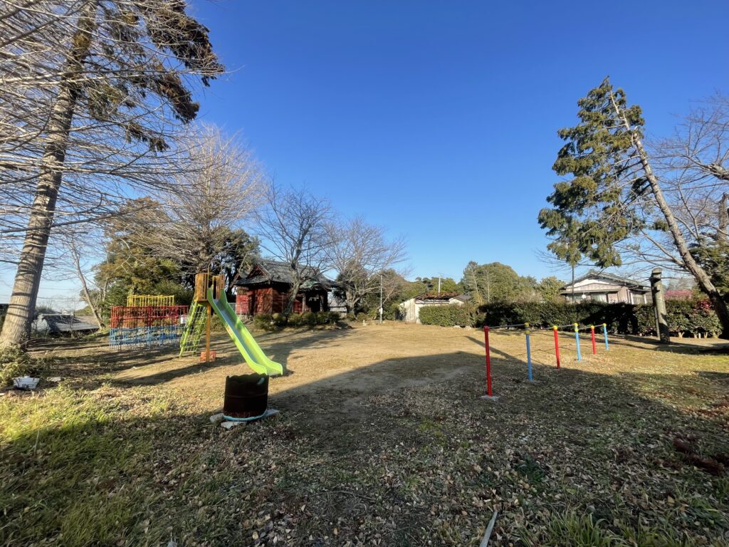 神社西側は児童公園が付属し、彩色柄の遊具がいくつか置かれています。