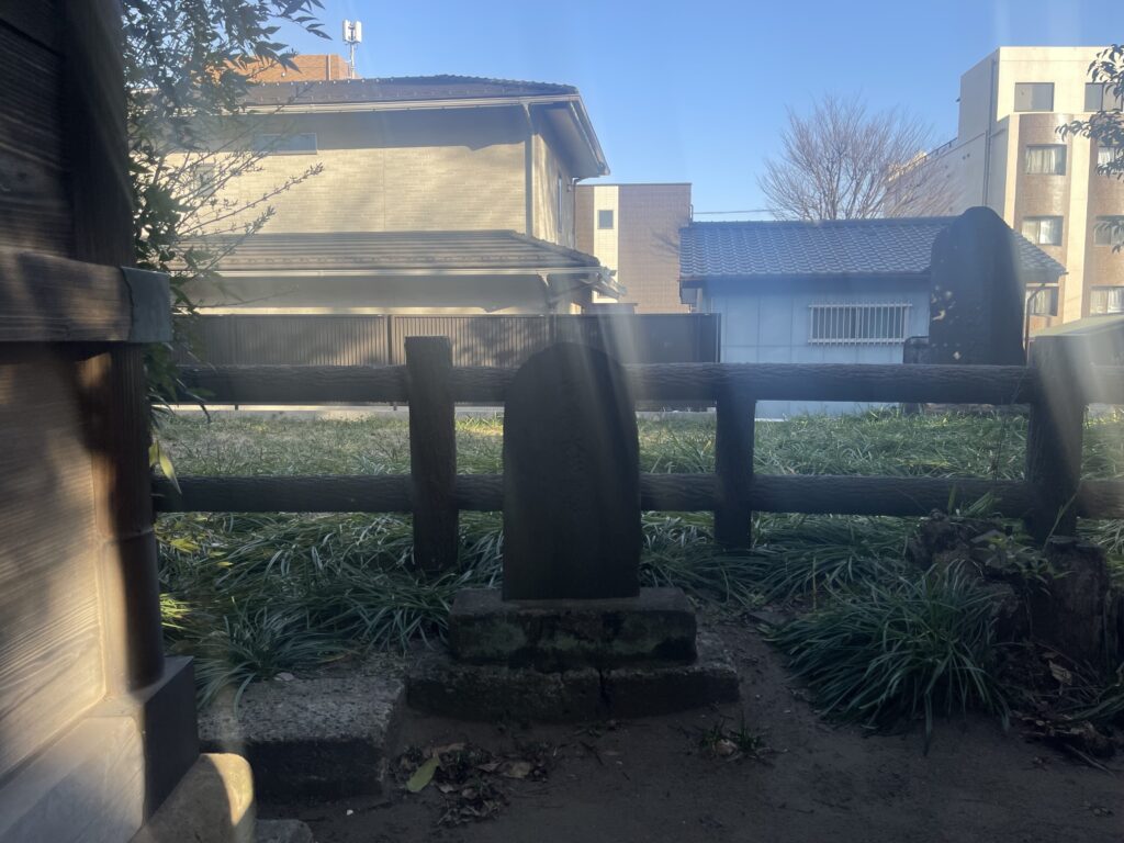 社務所の右手に、三つの社殿と石碑が建てられています。