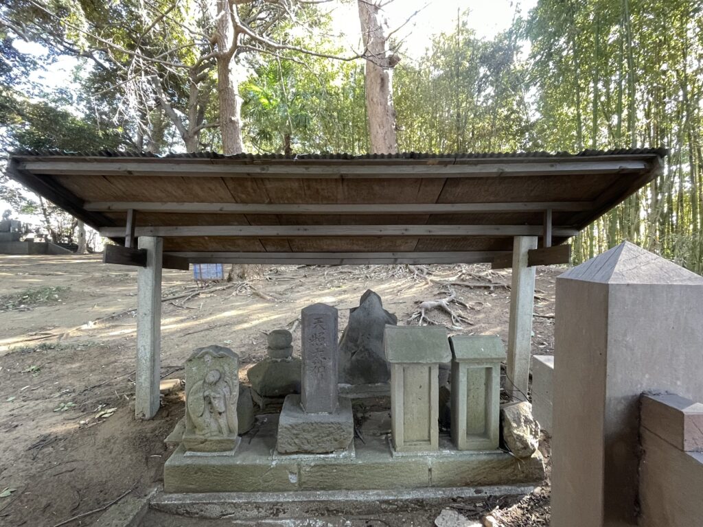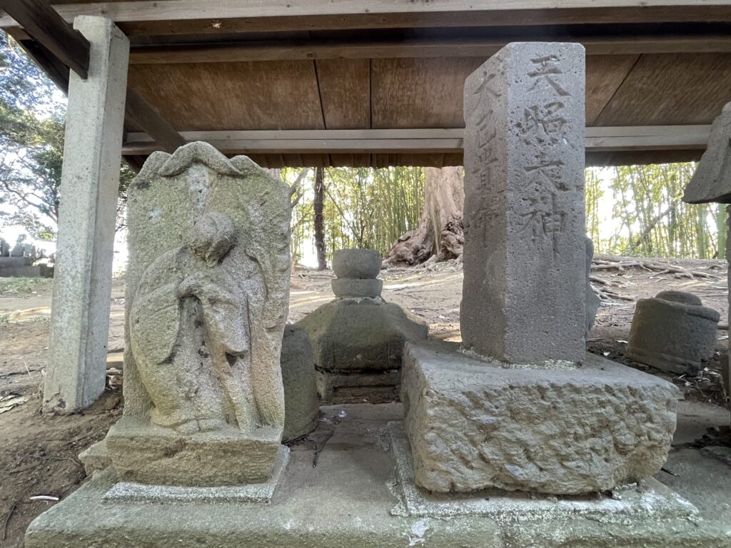 手水の裏の石碑、祠、仏像