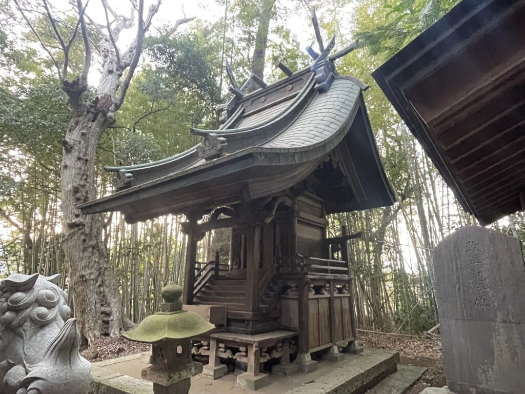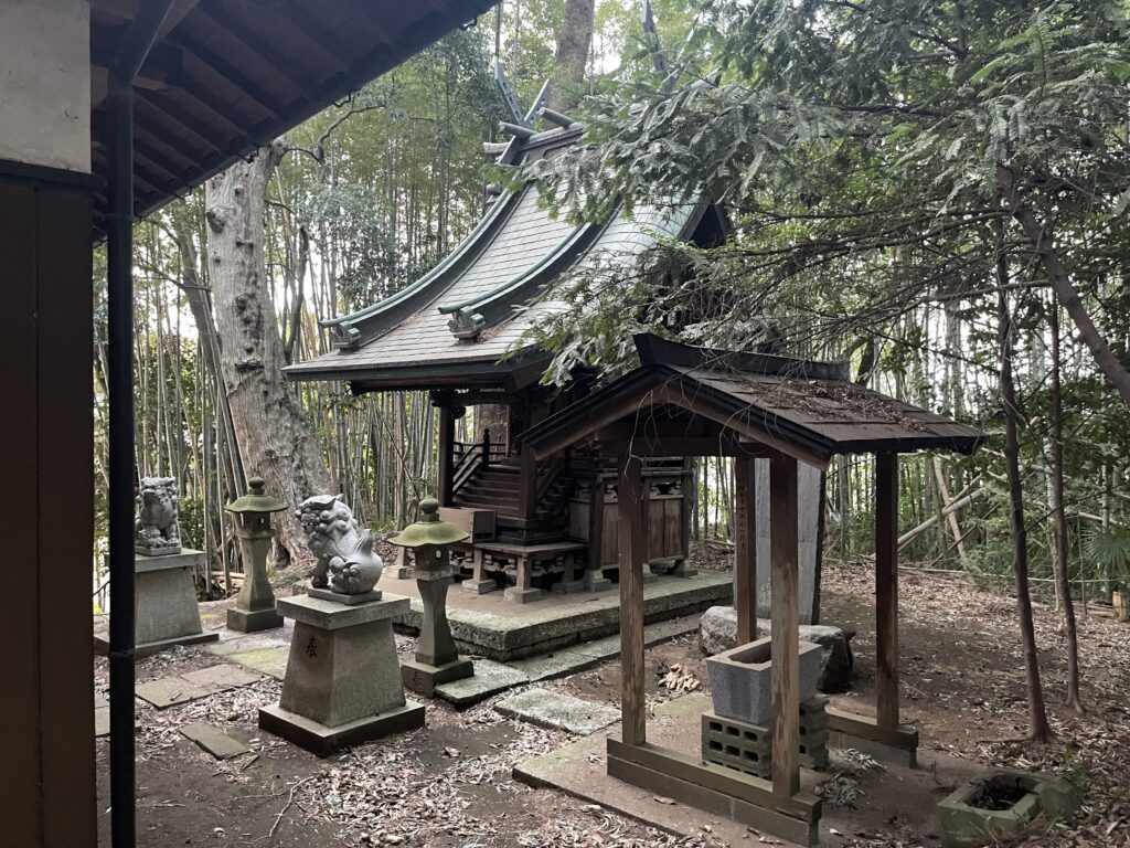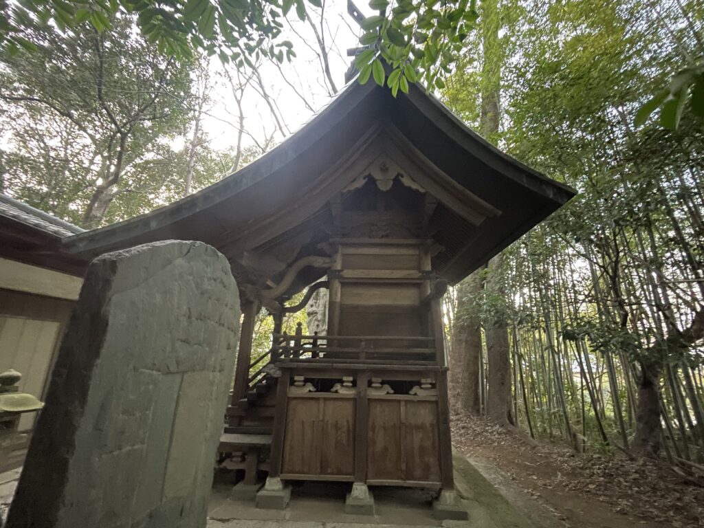 小池村の氏神とは、現 八千代市小池の「小池安房神社」のことでしょう。当社の東南東約880mに鎮座しています。両社ともに「天太玉命」を祀っています。