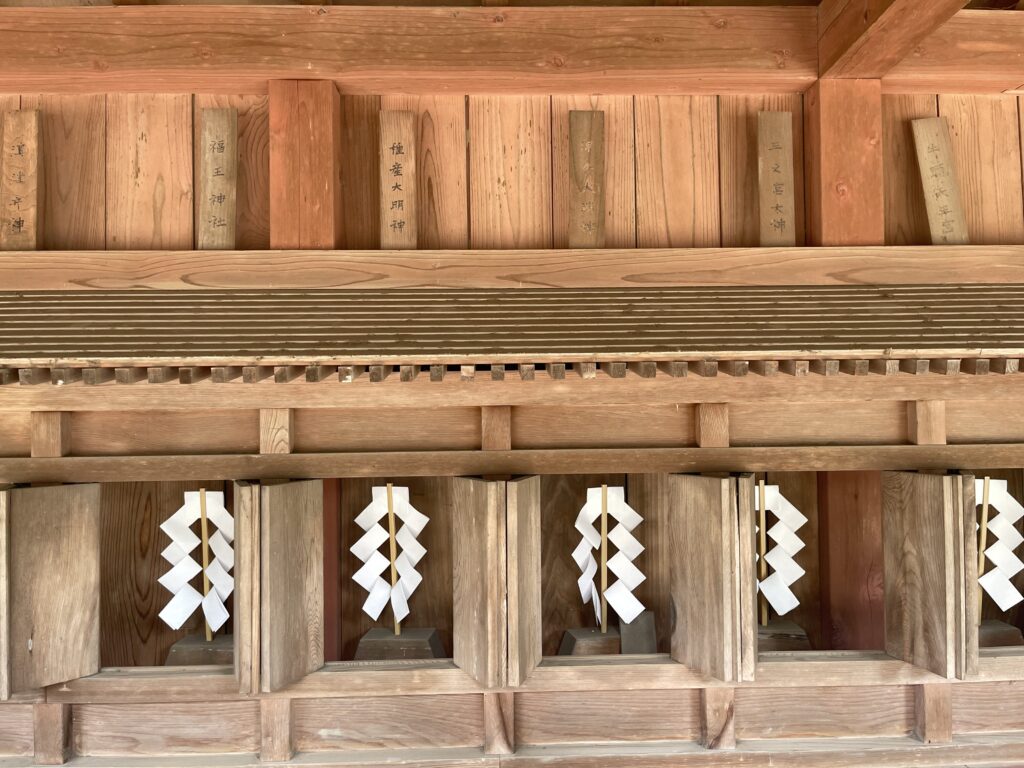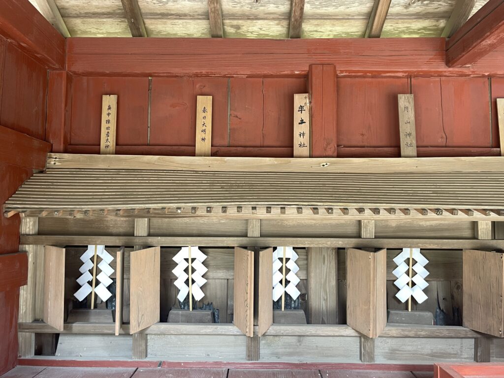 天明年間には、①御本殿の後~申之方までに七十五座、②外別宮に三座の末社があったと伝わります。現在は、その他に「金刀毘羅宮」も鎮座しています。