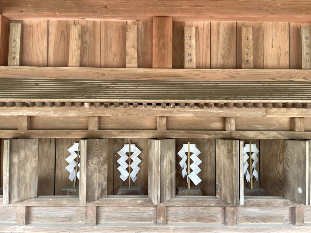 天明年間に神主「深河喬栄(たかなが)」が編述した『唯一社頭年中行事』には、①御本殿の後~申之方までに七十五座、②外別宮に三座の末社が記載されています。