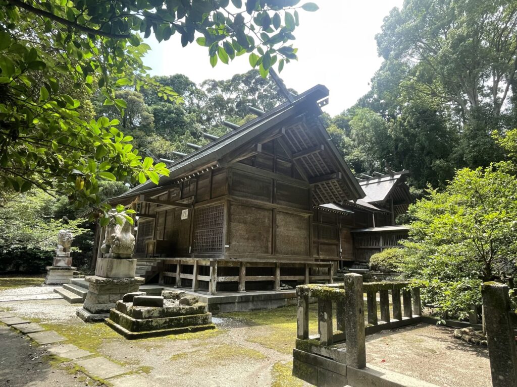 社殿手前にある椎(スダジイ)は、高が十三・七m、胸高直径が一•五cmに及ぶ大木であり、この地域に生育する椎としては、かなり大きい部類に入るとされる。当社の御神木とされており、齢は二百年以上と推定されている。