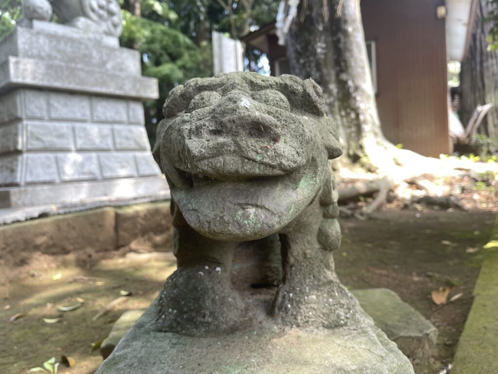 新しい狛犬手前の古い狛犬。右側の一体だけが残っていました。変わった体型をしています。