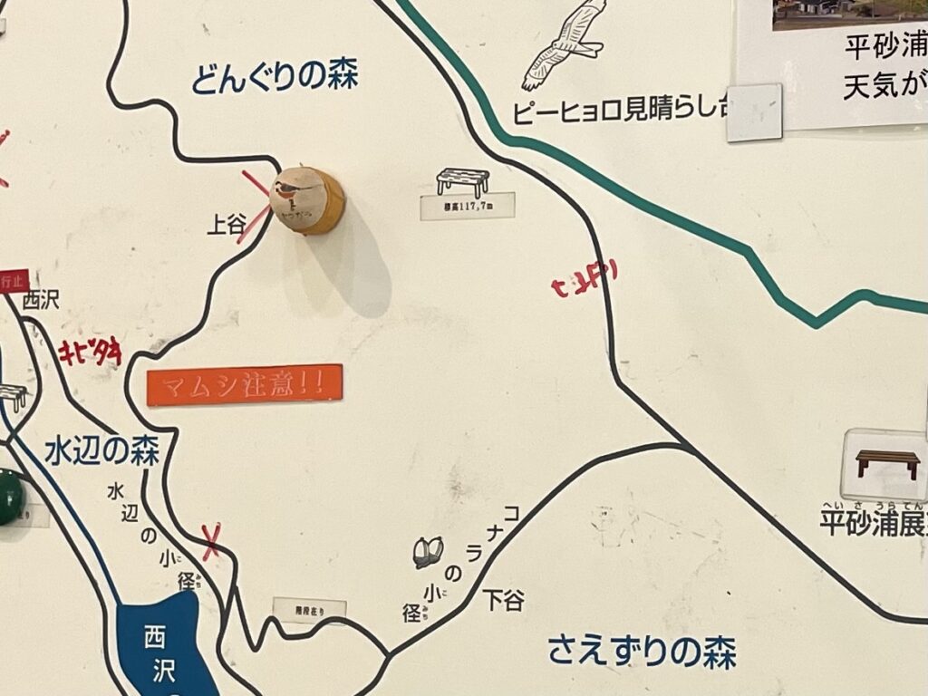 ところで、「安房神社」の脇にある「館山野鳥の森」の「ピーヒョロ見晴台」付近に「上谷」「下谷」なる地名があります。上記地図とも、齟齬のない位置関係にあります。