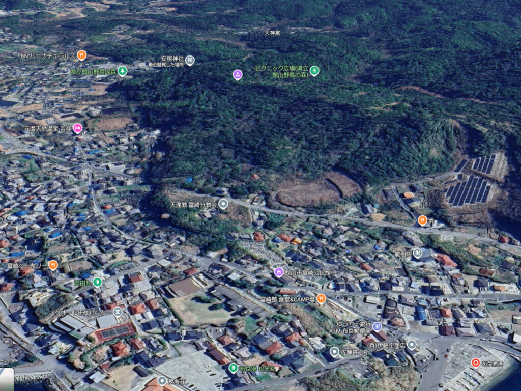 | 現在 | 安房神社の屋敷跡と伝わる | 安房神社の旧跡と伝わる感満寺畑(かあまんじばたけ)がある。一部は現在、布良崎神社関連の土地。 | 安房神社が鎮座 |