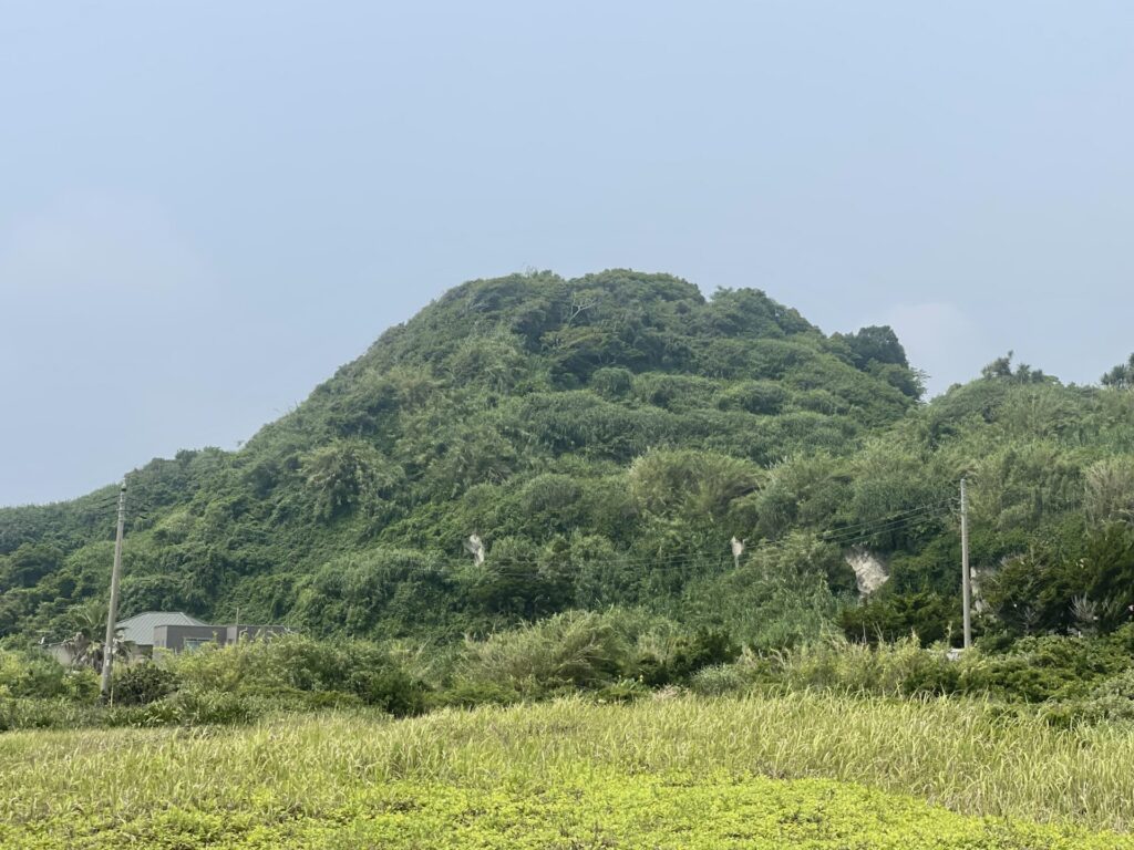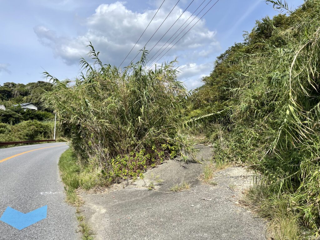 現地に行ってみたところ、丘陵の裾野に樹々が生い茂るなか、数軒の家が建っているだけでした。私有地の可能性があるため、散策は断念しました。