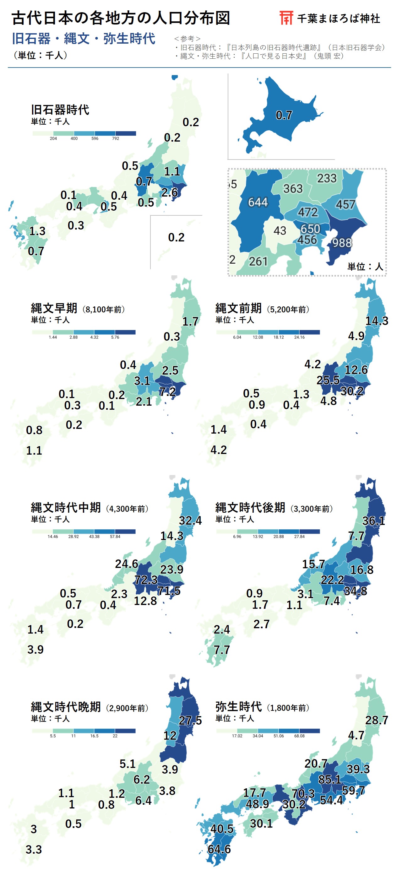 古代日本(旧石器時代・縄文時代・弥生時代)の人口分布