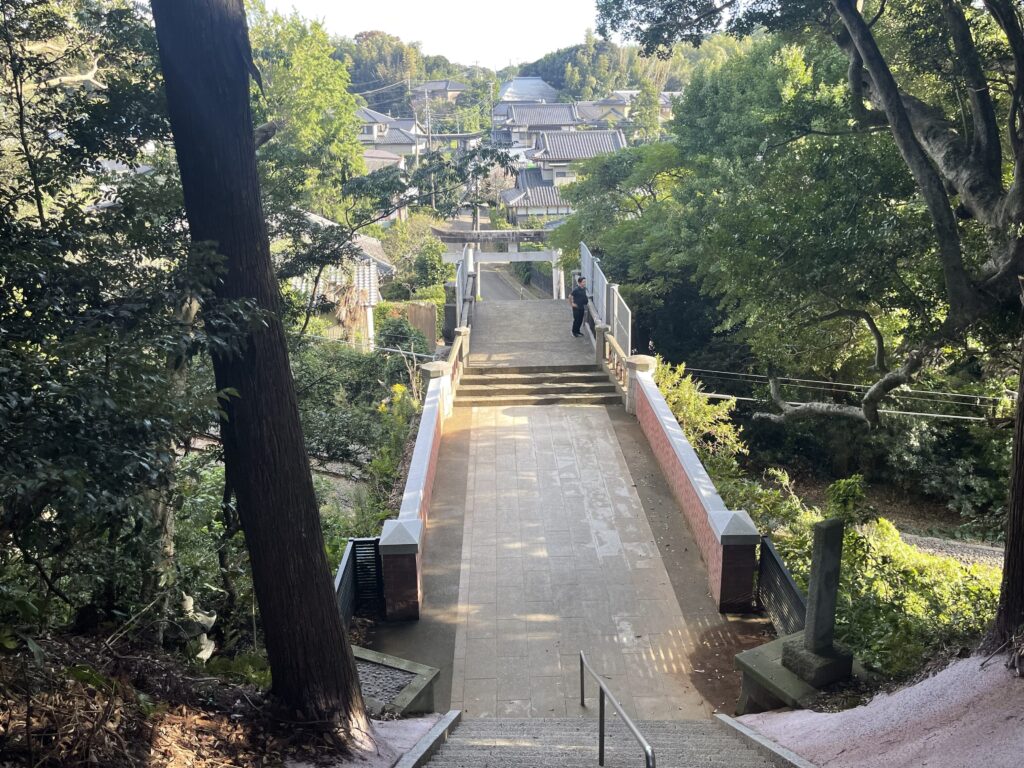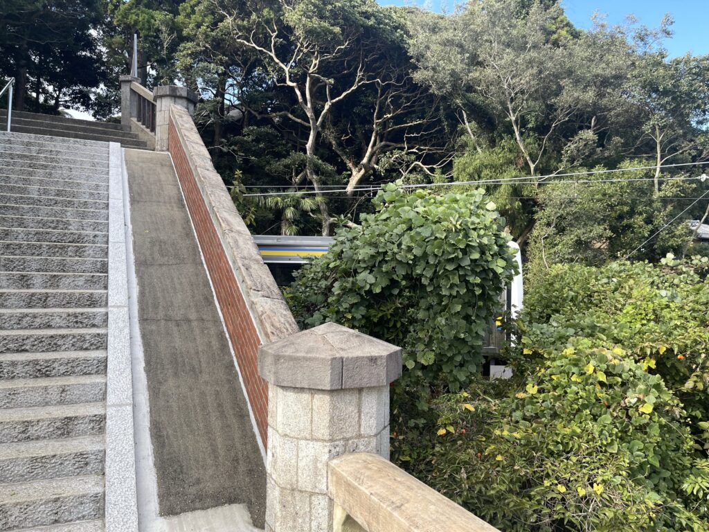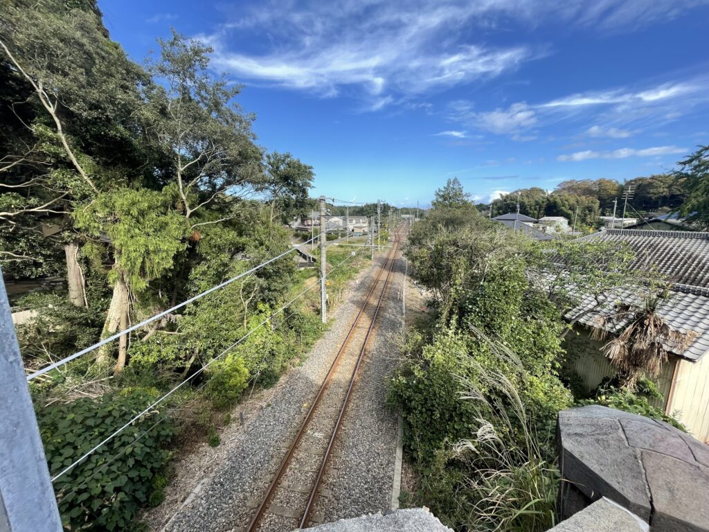 二之鳥居をくぐった後の上り坂からは、総武線の線路を見下ろすことができます。参詣路や境内に線路が通る神社は珍しいですね(他には「天津神明宮」しか知りません)。ここは、下総唯一のトンネルとのことです。