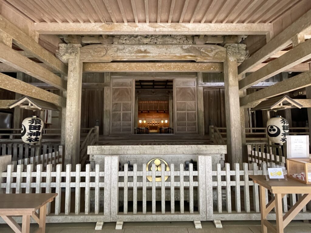 | ご祭神 | 猿田彦大神(さるたひこのおおかみ)、天鈿女命(あめのうずめのみこと)、菊理媛命(くくりひめのみこと) |