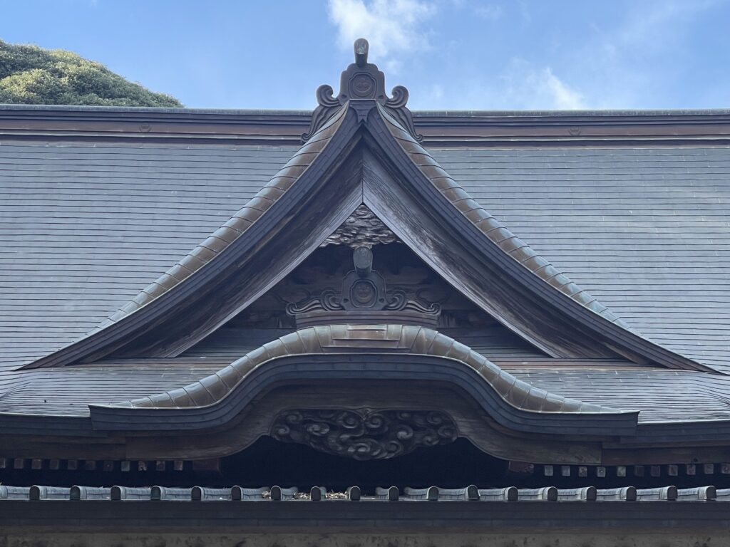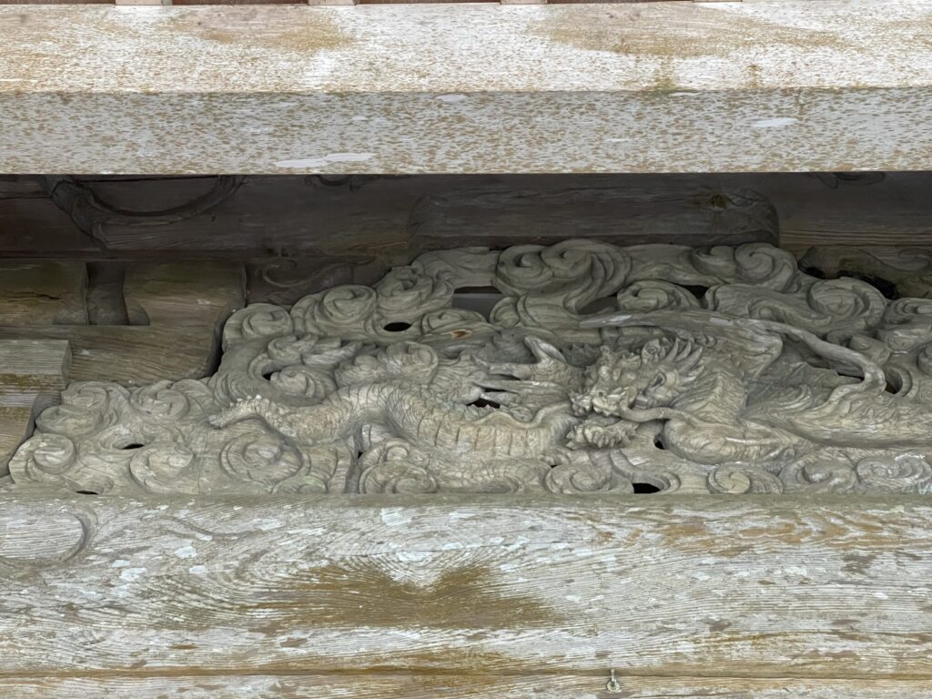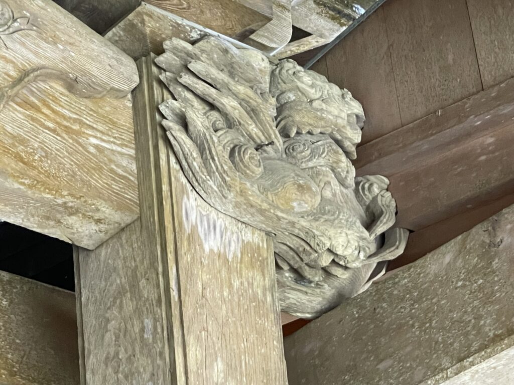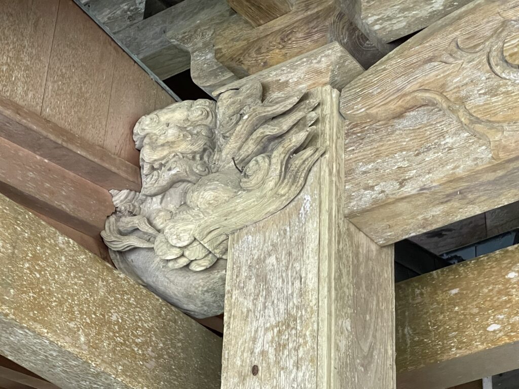 参拝する際、上部を見ると、拝殿の彫刻を見ることができます。