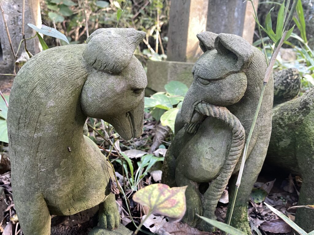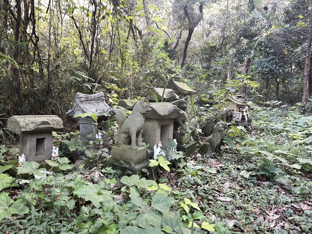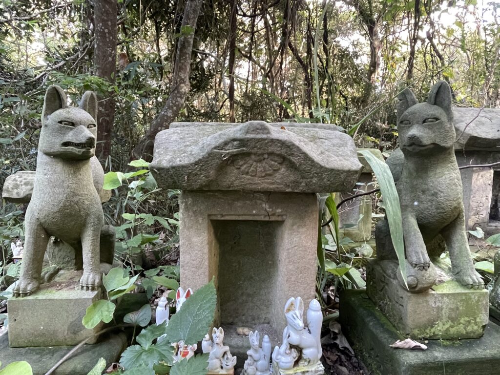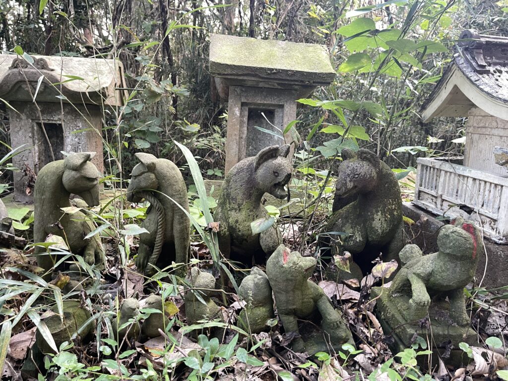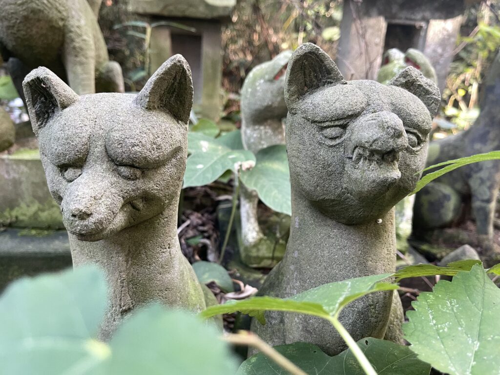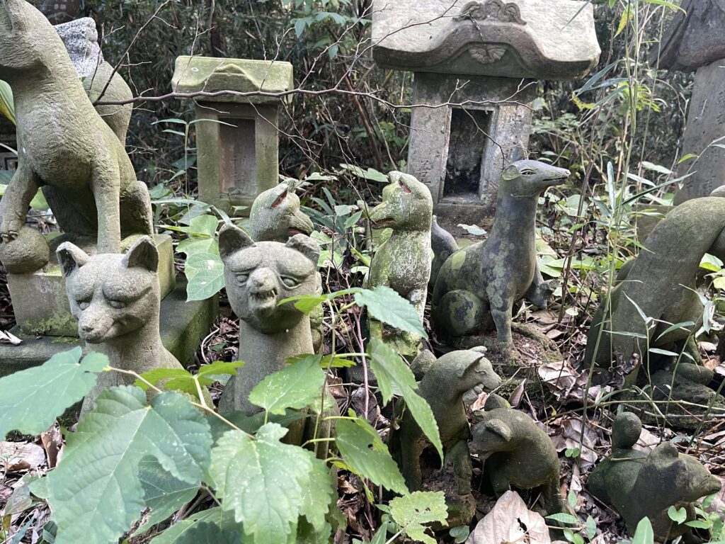 社殿左の小祠郡には、様々なデザインのお稲荷さんが並んでいます。どれも違う顔をしておりかなり面白いです。