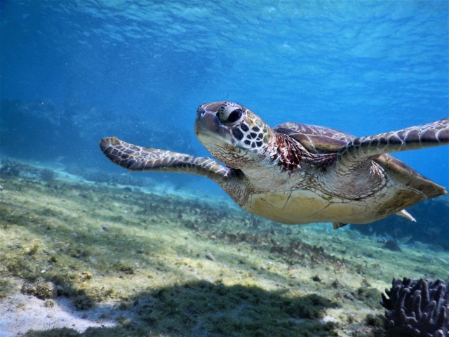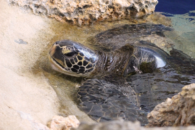 ウミガメが流木の欠片を首の下に置き、くつろいでいることがあります。この流木片を「カメのまくら」といい、拾った船は大漁が約束されているそうです。
