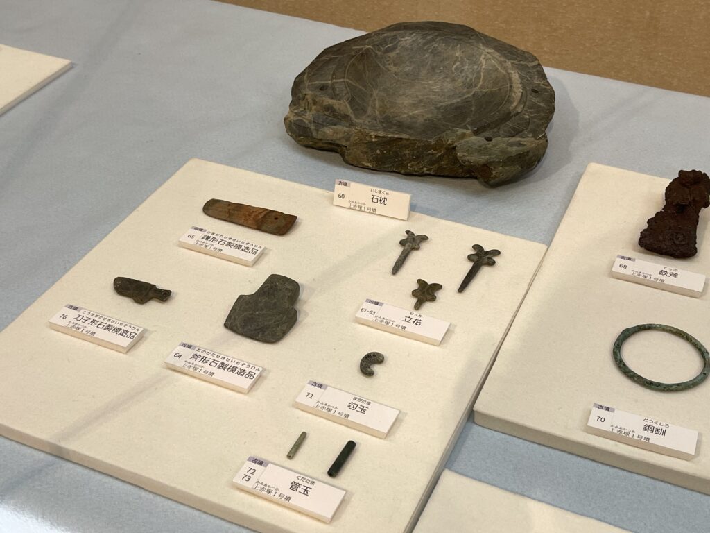 二つの主体部の中間部からは、それぞれ5つの立花(りっか)が出土しました。一方、石枕(いしまくら)は出土していません。