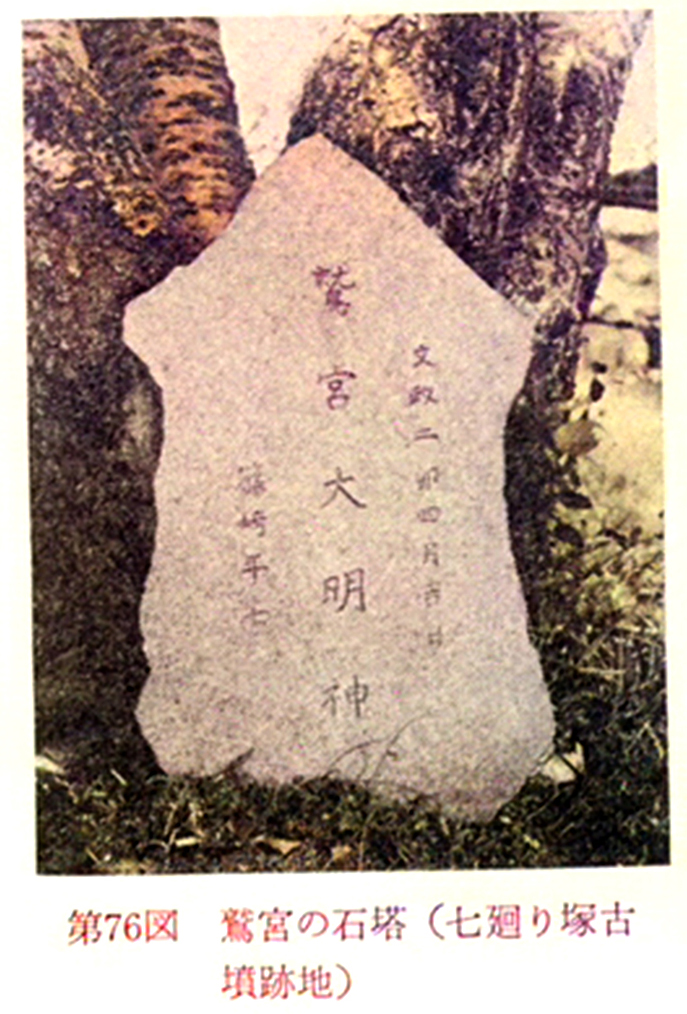 この塚を片足で七回左まわりすると、美しい乙女が機を織っている姿が現れるとか、梭(おさ)の音が聞こえてくるといわれ、神聖視されていた。