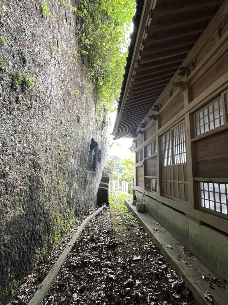 境内は、巨大な岩山を切り開いて造られた高台の平地にあり、その光景は圧巻です。