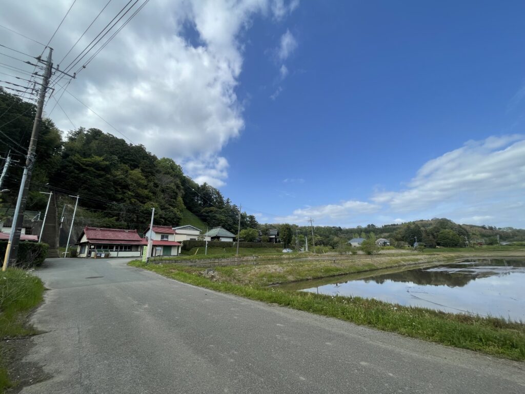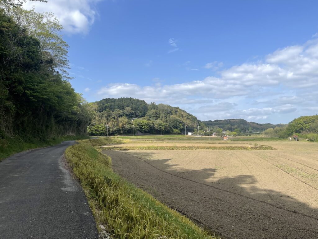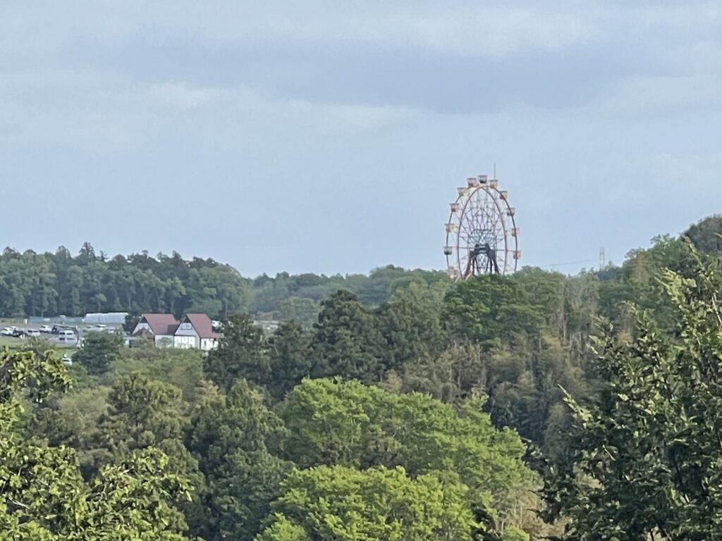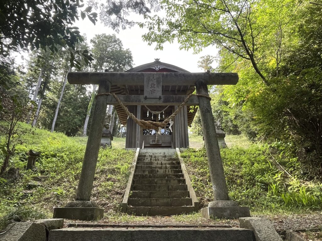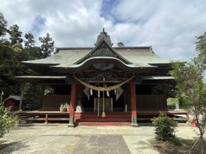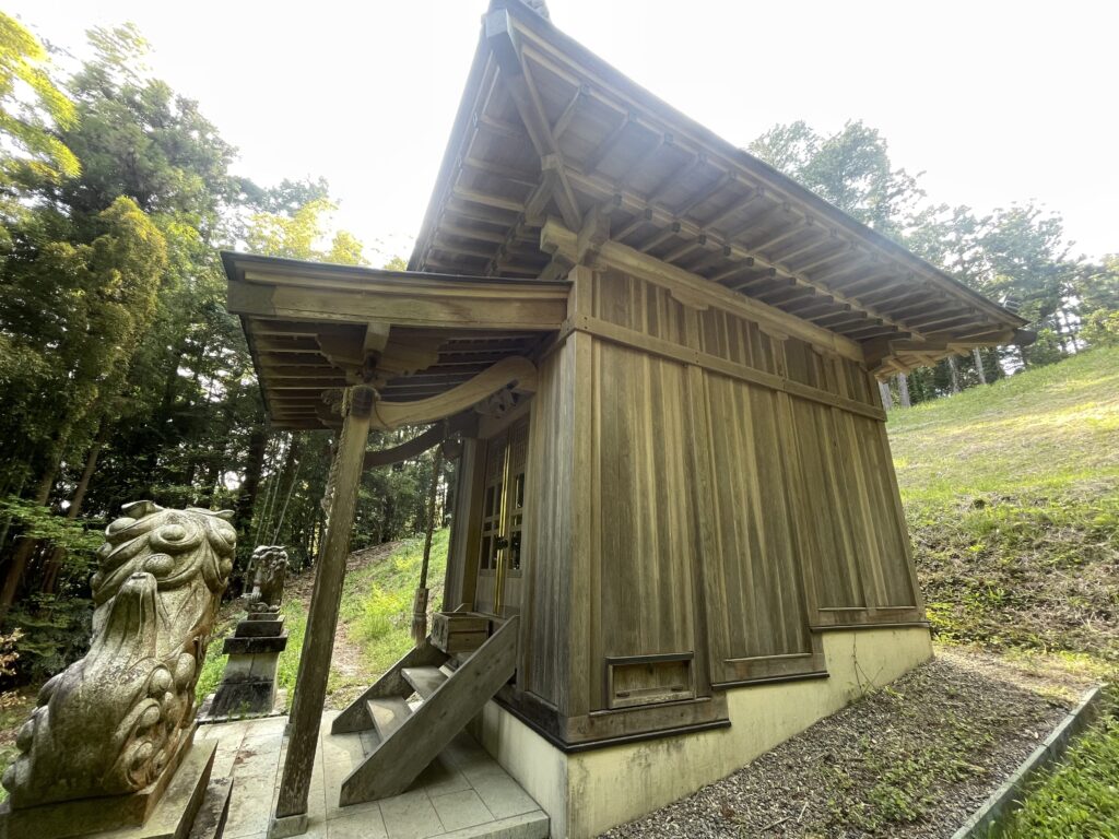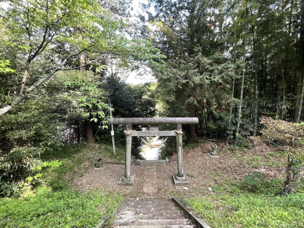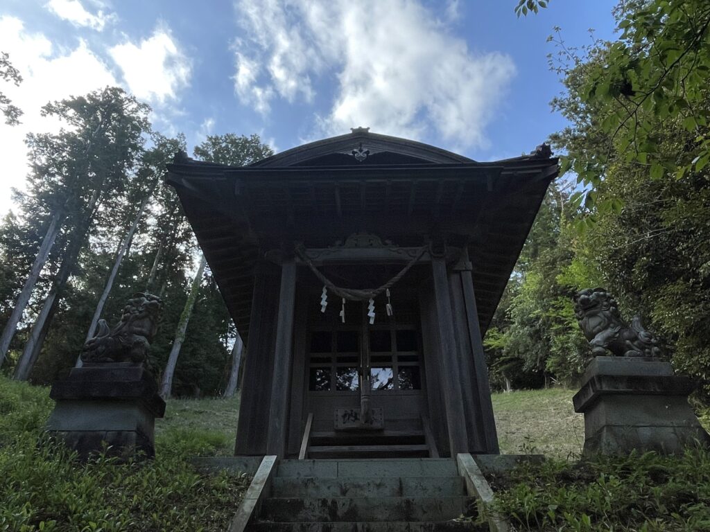 当社境内は、急な階段を数十段登った台地の上にあります。階段を振り返った眼下の水田風景や、社殿背後から見える東京ドイツ村の観覧車など、景色がとても素晴らしいです。